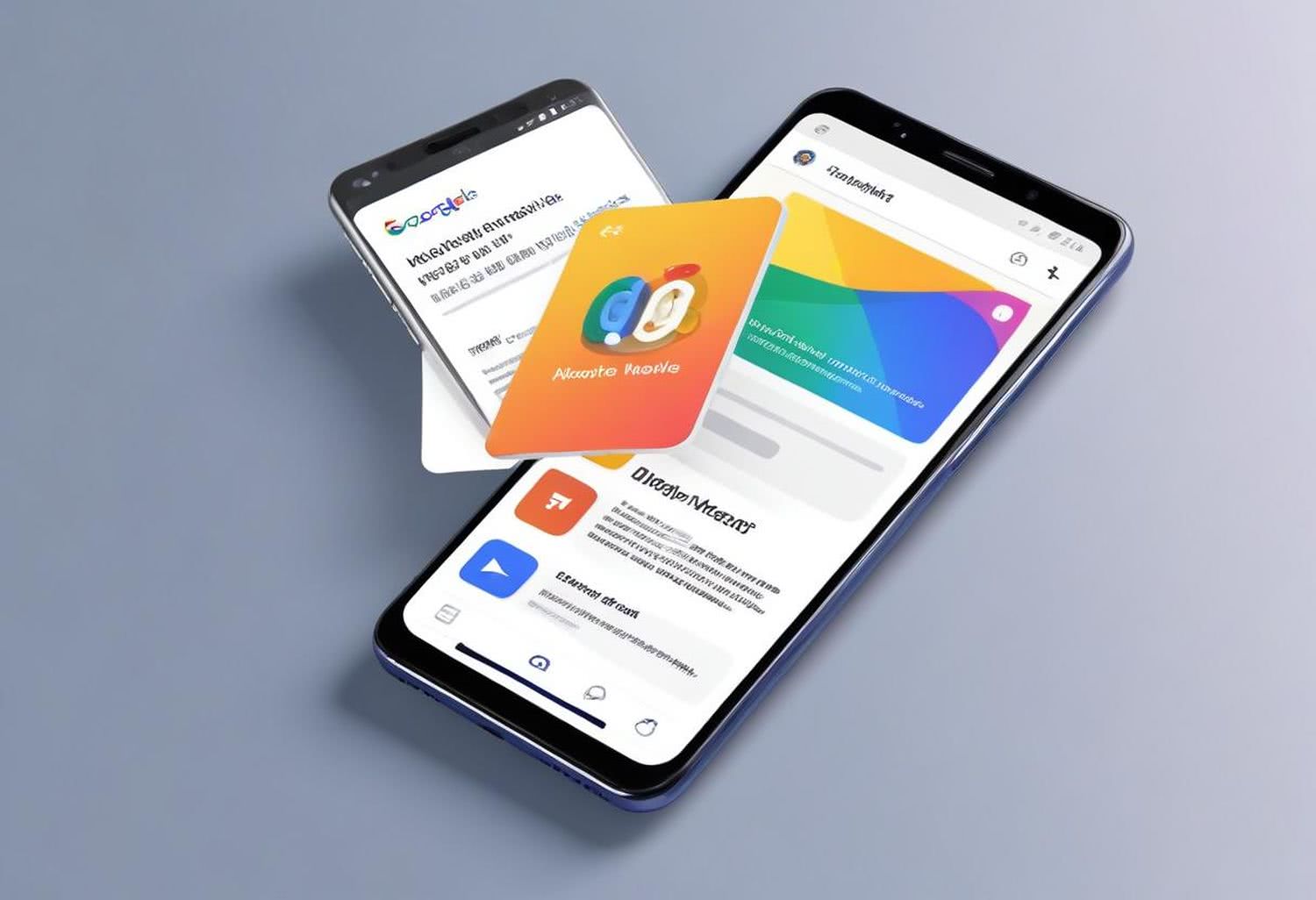 Semi-realistic illustration as a drawing: of a smartphone displaying a mobile-optimized website with a vibrant, modern design. The website features a clean layout with large, readable text and a prominent Google icon in the background. The screen is set against a softly blurred, neutral background to emphasize the phone and website. A computer is visible in the background, slightly out of focus, providing a contrasting element. The scene is lit with natural light, enhancing the realistic and inviting atmosphere of the setup. The overall composition focuses on the smartphone, highlighting the mobile-first design and SEO optimization without unnecessary distractions. IMAGE STYLE: Use a warm color palette of red, deep blue, deep purple, deep orange, light grays, and a touch of green, yellow. Draw outlines with black lines. The background should be blurred and minimalistic. The mood should be modern with a bit of vintage style.
